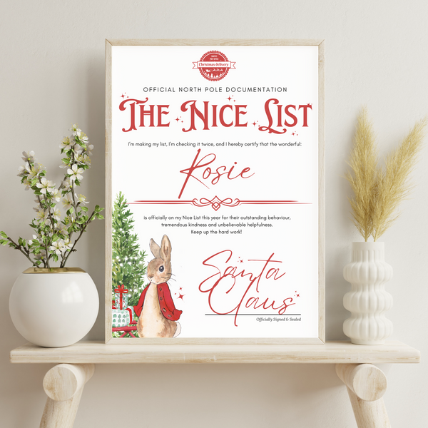Make Christmas extra special with this magical Personalised Nice List Certificate, straight from the North Pole and signed by Santa himself! A joyful way to celebrate your child’s kindness, good behaviour, and festive spirit - perfect for building excitement in the run-up to Christmas.