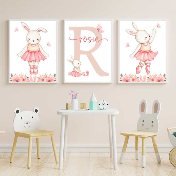 Set of 3 coordinating prints featuring adorable ballet bunnies